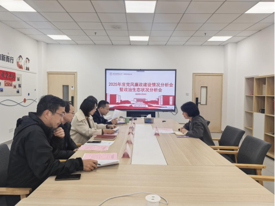 2026年 3 月 24 日下午,国教创党总支2025年度党风廉政建设情况分析会在 E 楼 416 会议室召开,校纪委委员林凡出席会议,党总支全体中层干部参加会议,会议由党总支书记黄金娟主持。